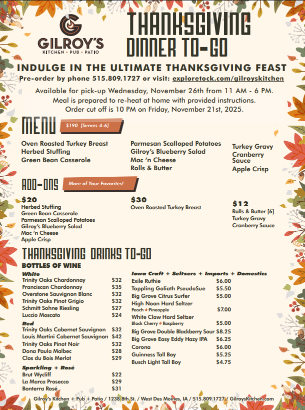 OrderWe have been hosting our events at Gilroy's for some time now and the food has always been served hot and delicious and my team and our guests are always served with a friendly smile! I have been in the service industry my entire life, and the service has been above and beyond my expectations!